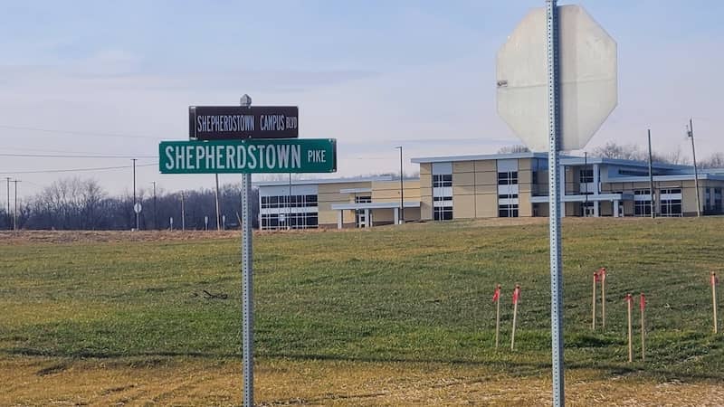 You'll want to look for the signs if you are driving to the new school — the address is 545 Shepherdstown Campus Blvd, Shepherdstown according to Jefferson County Schools, but that location is not yet showing correctly in Google maps.