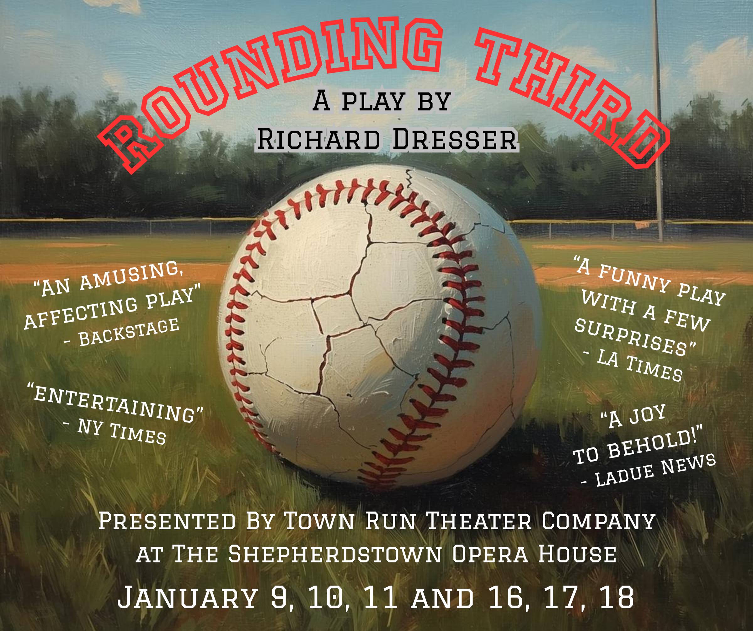 Rounding Third - A Play About Baseball— A Town Run Theater Company production exploring competition, family, and America’s pastime. Shepherdstown Opera House, 131 West German St, Shepherdstown. Two weekends, Jan 9–18, various times. $ Tickets & Info…