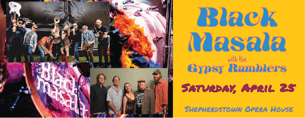 Live Music: Black Masala w/ Gypsy Ramblers — High-energy live music performance. Shepherdstown Opera House, 131 West German St, Shepherdstown. Saturday, April 25, 8 pm. $. Tickets & Info…