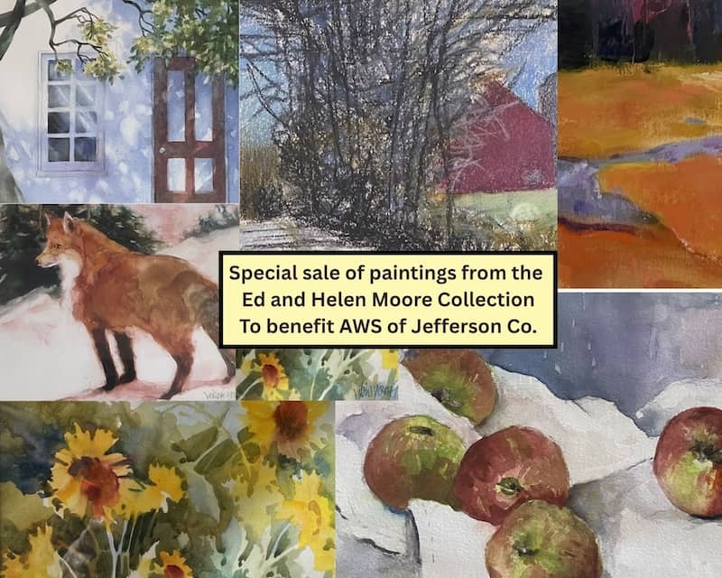 Local artists’ paintings from the collection of longtime Shepherdstown residents Ed and Helen Moore will be sold at the gallery Nov. 15 – 22 with proceeds benefitting Jefferson County Animal Welfare as well as Shepherdstown Shares.