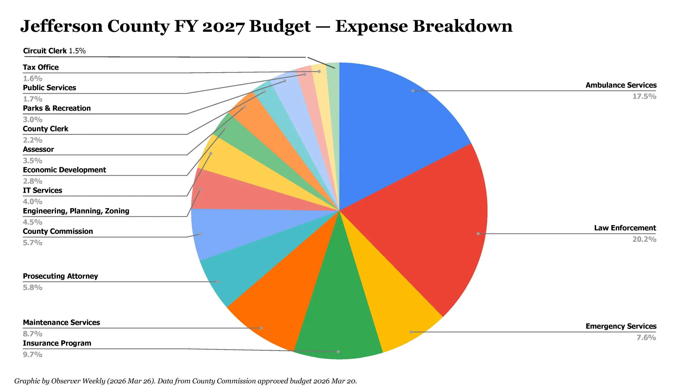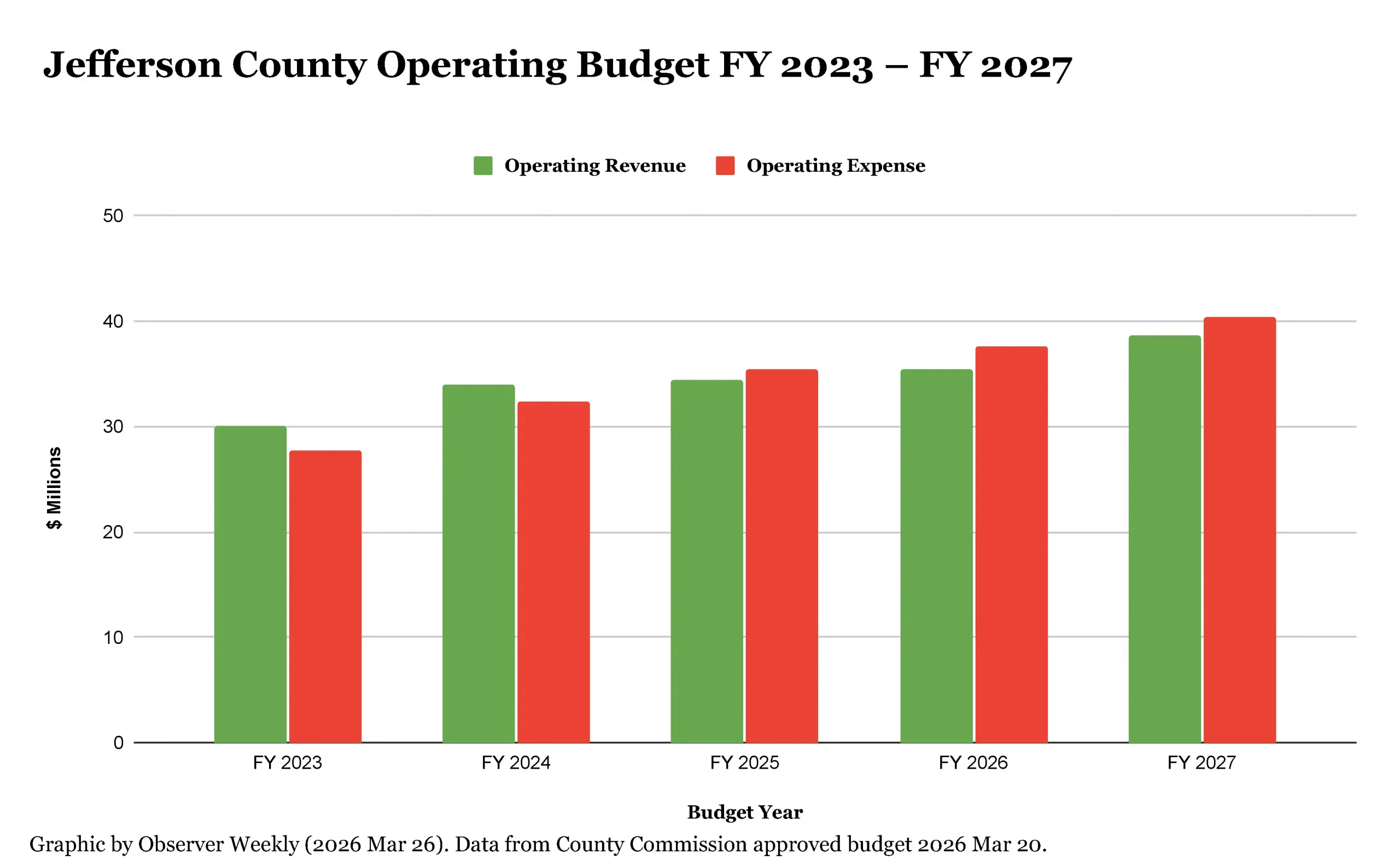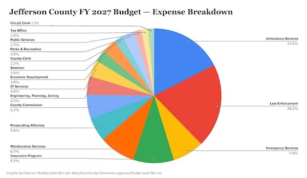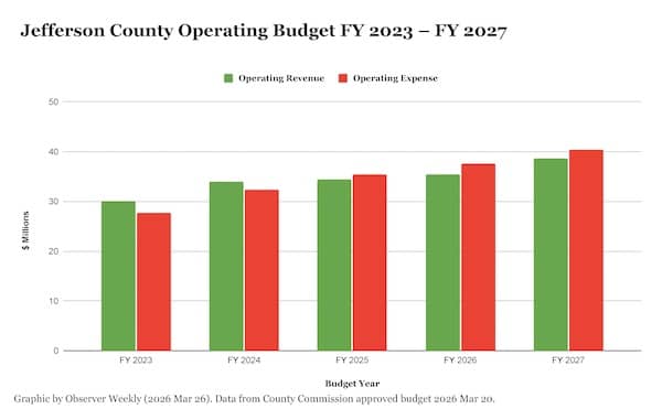 The Jefferson County Commission met on March 20 to review and approve a budget for fiscal year 2027 (FY 2027), which begins on July 1.