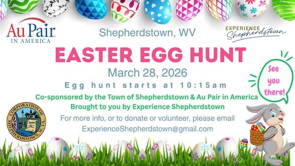 Easter Egg Hunt — Community Easter egg hunt for children and families. McMurran Hall, 102 North King St, Shepherdstown. Saturday, Mar 28, 10:00 am (egg hunt starts at 10:15 am). Free. Info…